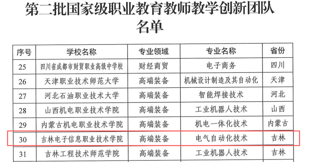 近日,教育部发布《关于公布第二批国家级职业教育教师教学创新团队名单的通知》,我校电气自动化技术专业教师教学创新团队被确定为第二批国家级职业教育教师教学创新团队,成为我校首个国家级职业教育教师教学创新团队,标志着我校在职业教育教师队伍建设、专业教学创新领域实现国家级团队建设“零的突破”,为学校职业教育高质量发展注入强劲动力。